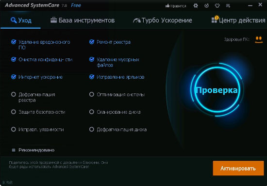 Бесплатная программа Advanced System Care Free 7.3.0 (Адвансед систем каре) мощный пакет утилит для оптимизации, исправления ошибок и настройки, с целью повышения производительности операционной системы Виндовс.